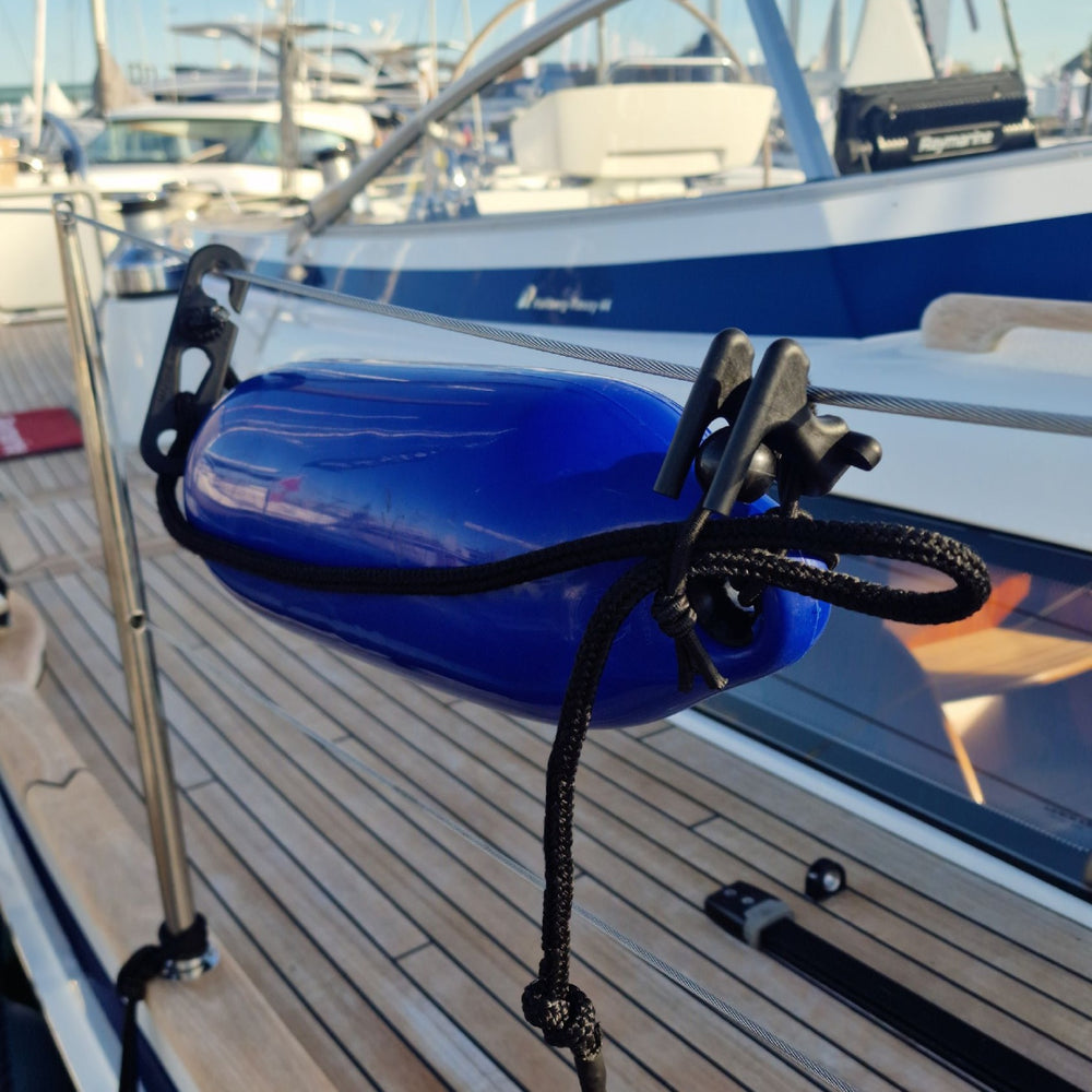 The Fender Mate Slider™ Bundle lets you attach, remove, adjust and hang your fenders quickly on any wire or safety line up to 10mm, accommodating fender ropes up to 10mm. No more untying or retying, just effortless fender management. No more fenders on the deck and easy access and deployment of your fenders.
