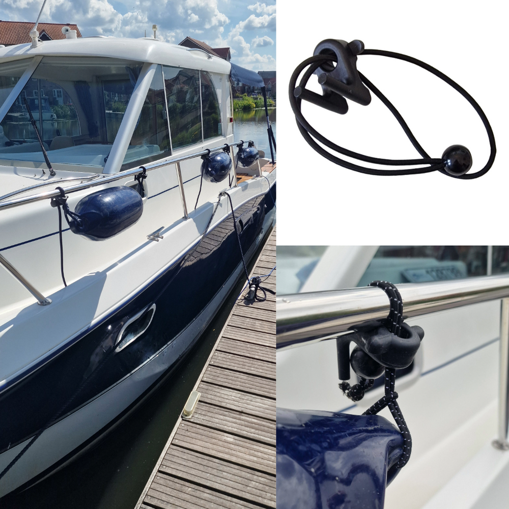 The Fender Mate™ upgrade kit consists of a standard Fender Mate™ with a bungee ball. This allows you to easily hook your fenders up on the rail or wire, keeping them off the deck and safely stowed if you don't have anywhere to store them. It is great for solo boating and makes life easy when coming into a mooring.