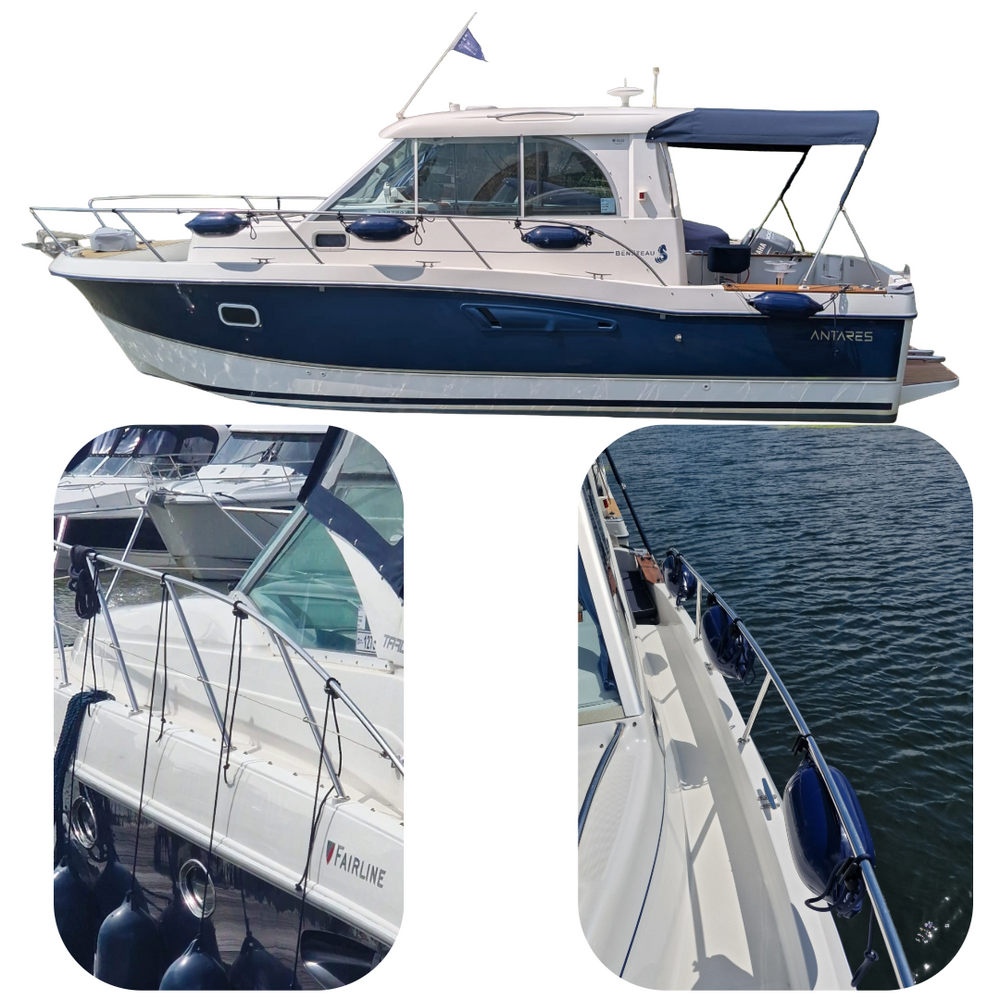 The Fender Mate™ bundle consists of The Adjustable Fender Mate™ at the top of your Fender and at the bottom a standard Fender Mate™ with a bungee ball. This allows you to easily hook your fenders up on the rail or wire keeping them off the deck if you don't store them. It is great for solo boating and makes life easy when coming into a mooring.